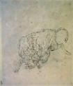Skip to main contentDescriptionBison in fighting position, rough sketch in graphite of same, verso