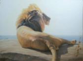 Skip to main contentDescriptionDiptych of lion resting on a rock.