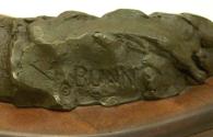 DescriptionSculpture of a wolf laying down, possibly chewing on a bone.