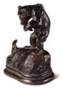 Skip to main contentDescriptionSculpture of a bear cub looking down at a rabbit that is walking up the rock he is standing on.